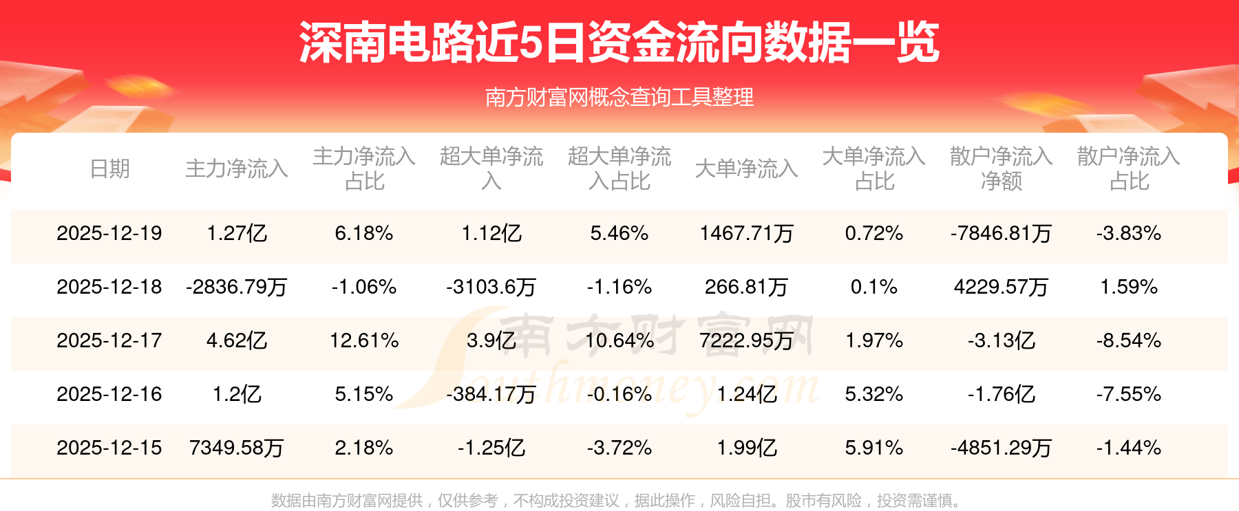近5日資金流向一覽見下表: