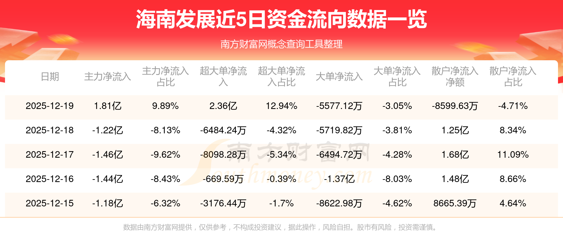 12月19日消息,海南發(fā)展主力資金凈流入1.81億元,超大單資金凈流入2.36億元,散戶資金凈流出8599.63萬元。