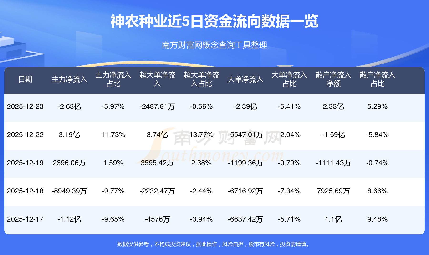 12月23日消息,神農(nóng)種業(yè)主力凈流出2.63億元,超大單凈流出2487.81萬元,散戶凈流入2.33億元。