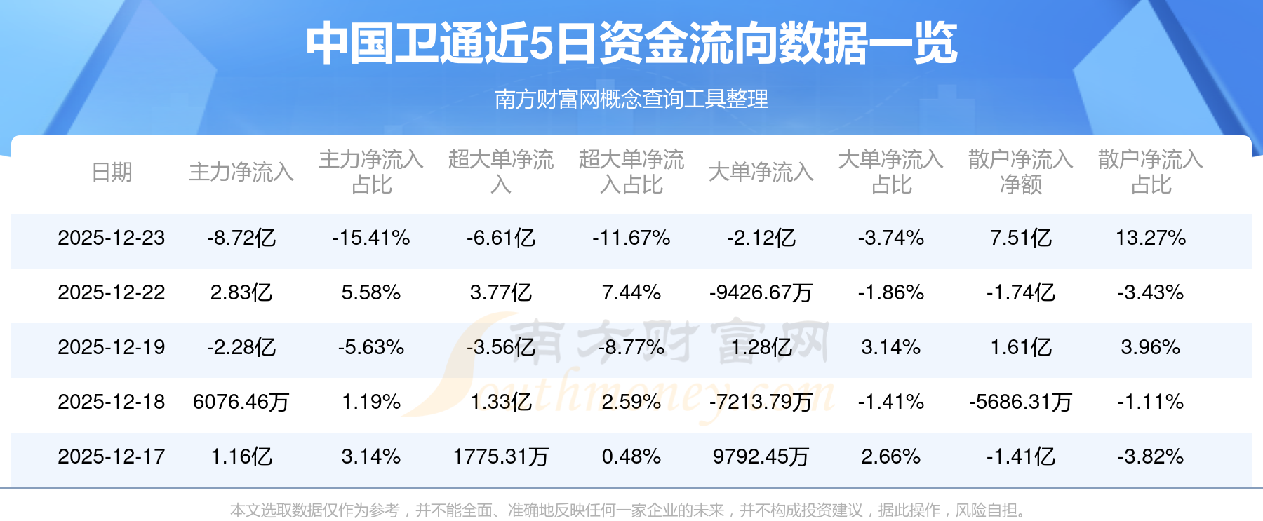 12月23日消息,中國衛(wèi)通12月23日主力資金凈流出8.72億元,超大單資金凈流出6.61億元,大單資金凈流出2.12億元,散戶資金凈流入7.51億元。