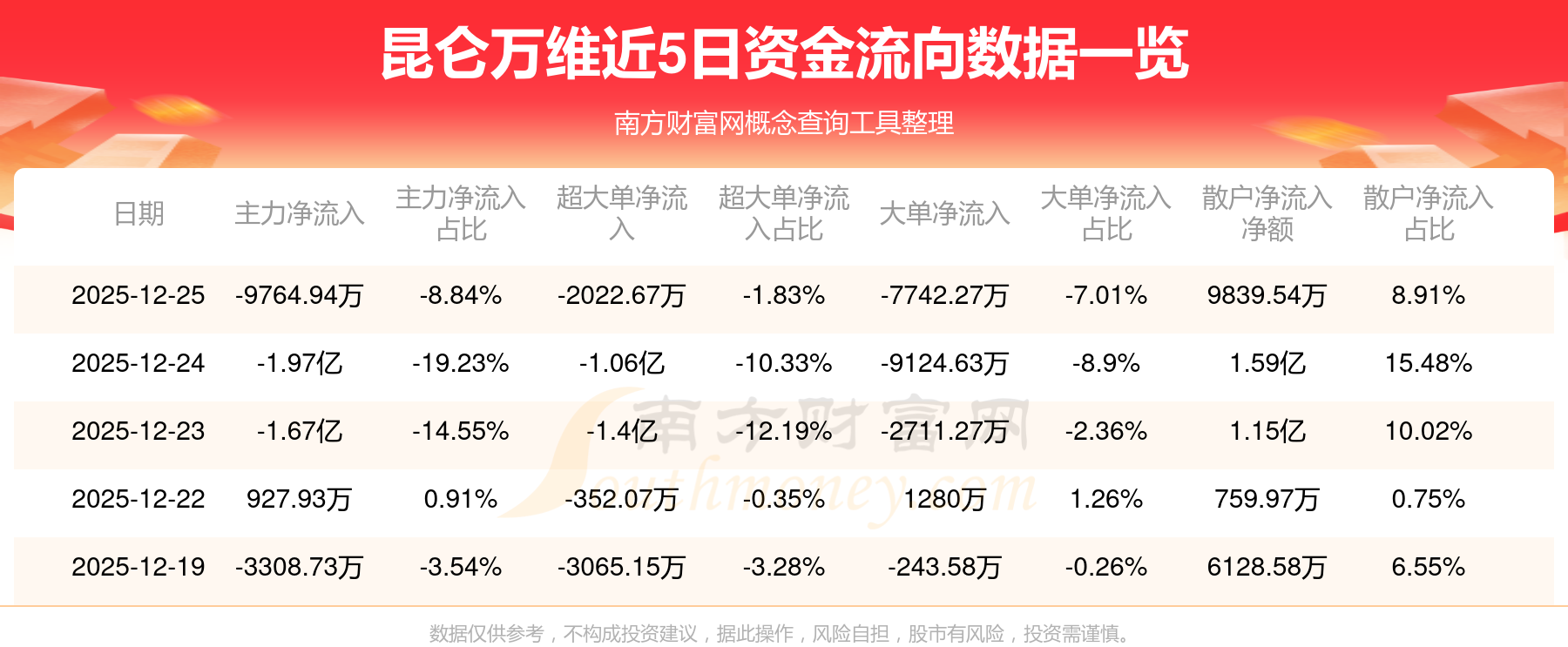 資金流向數(shù)據(jù)方面,12月25日主力資金凈流流出9764.94萬元,超大單資金凈流出2022.67萬元,大單資金凈流出7742.27萬元,散戶資金凈流入9839.54萬元。