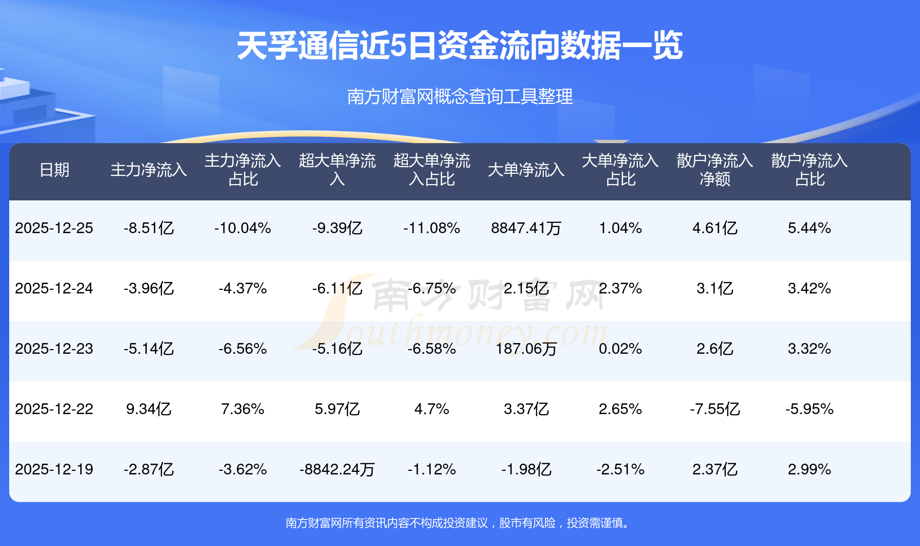 資金流向數(shù)據(jù)方面,12月25日主力資金凈流流出8.51億元,超大單資金凈流出9.39億元,大單資金凈流入8847.41萬元,散戶資金凈流入4.61億元。