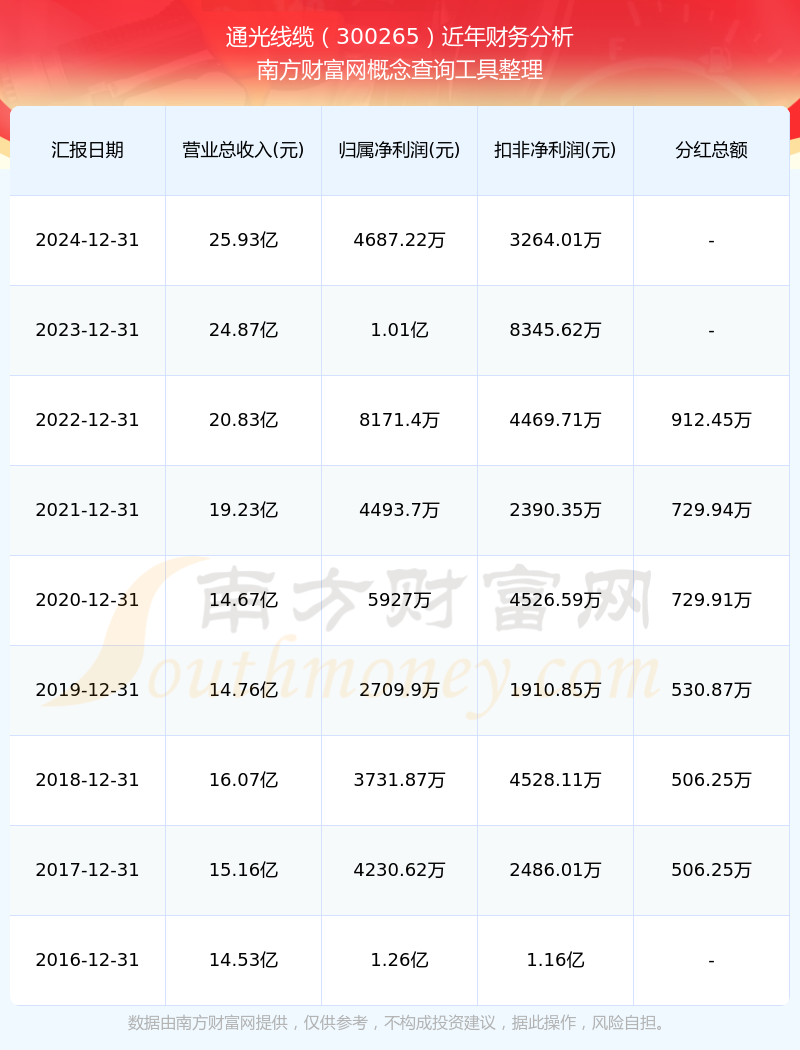 公司2024年總營收25.93億,同比增長4.27%;凈利潤4687.22萬,同比增長-53.36%;銷售毛利率15.25%。
