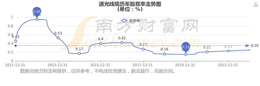通光線纜最新一次公布的分紅方案為10派0.25元。本次權(quán)益分派股權(quán)登記日為2023年5月30日,除權(quán)除息日為2023年5月31日,派息日為2023年5月31日。