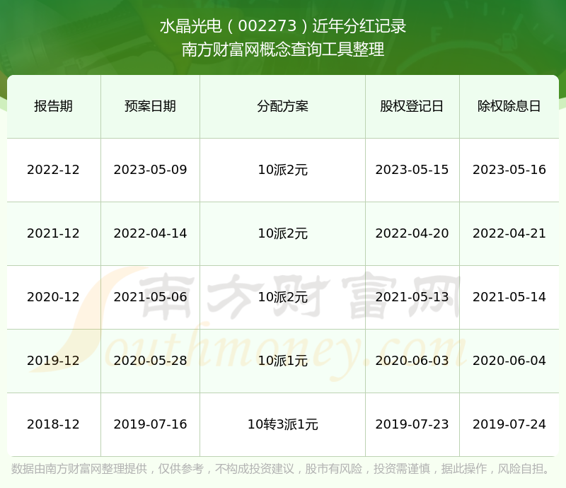 水晶光電002273分紅時(shí)間: