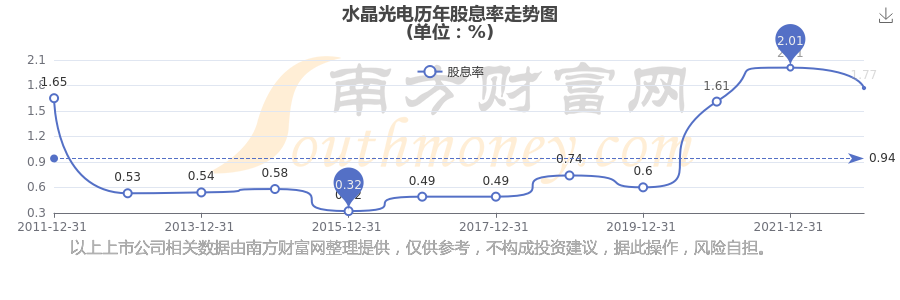 水晶光電歷年股息率走勢(shì)如下圖: