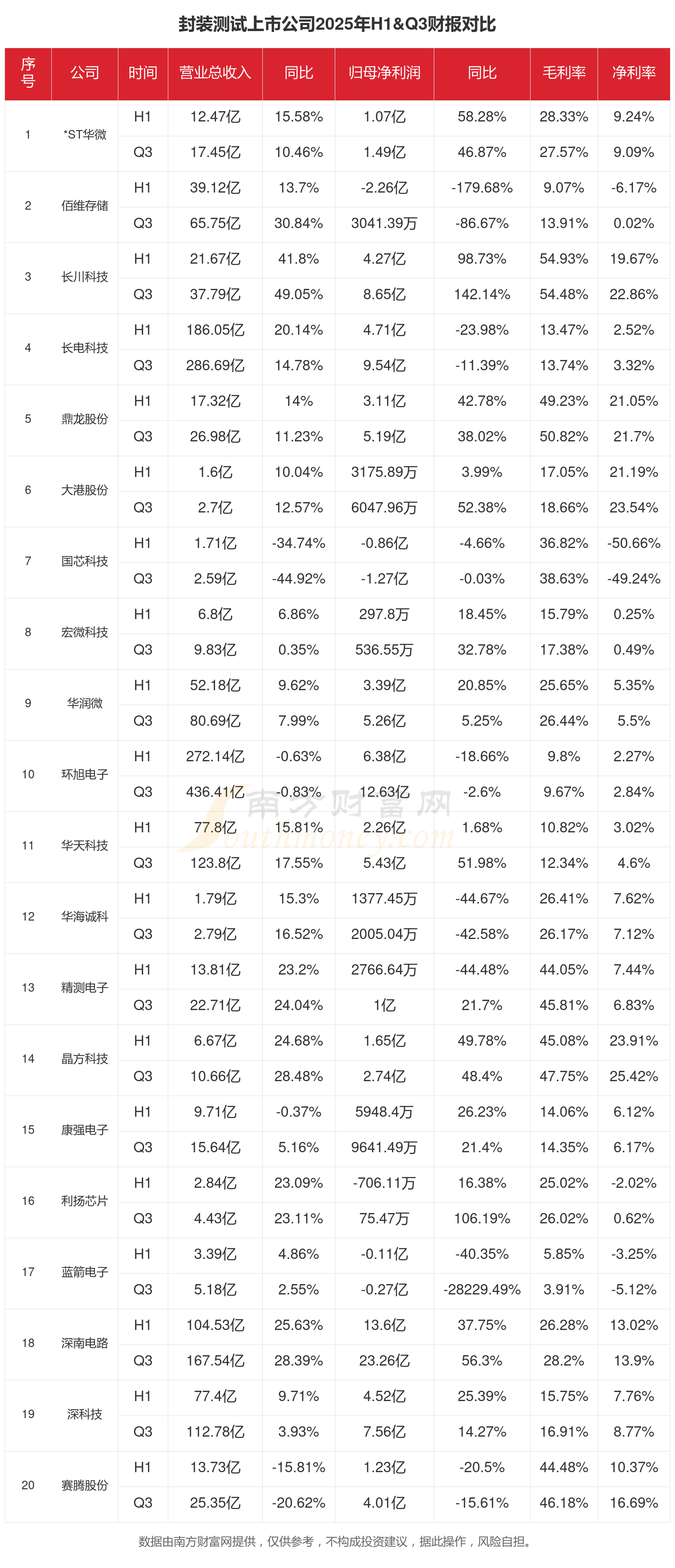 華天科技(002185):2025年第三季度,華天科技營收同比增長20.63%至46億元;凈利潤為3.16億,同比增長135.4%,毛利潤為6.85億,毛利率14.9%。