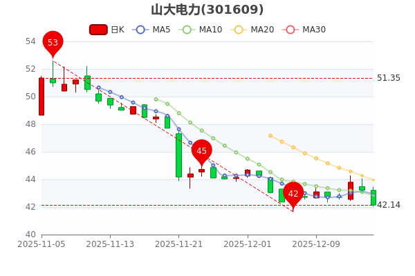 山大電力12月16日消息,今日該股開盤報價43.21元,收盤于42.140元。5日內(nèi)股價下跌2.28%,成交額4876.99萬元。