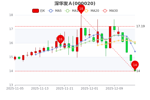 12月16日消息,深華發(fā)A截至15點(diǎn)收盤,該股跌5.02%,報(bào)14.000元,5日內(nèi)股價(jià)下跌21%,總市值為39.64億元。