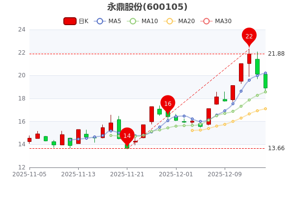 12月16日消息,永鼎股份最新報價18.910元,3日內(nèi)股價下跌11.26%;今年來漲幅上漲73.77%,市盈率為431.74。