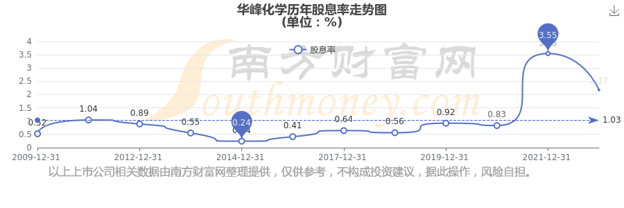 華峰化學(xué)歷年股息率走勢(shì)如下圖: