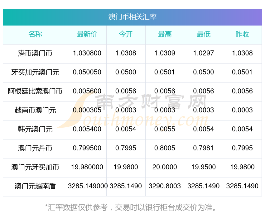 2025年12月7日澳門幣相關(guān)匯率查詢