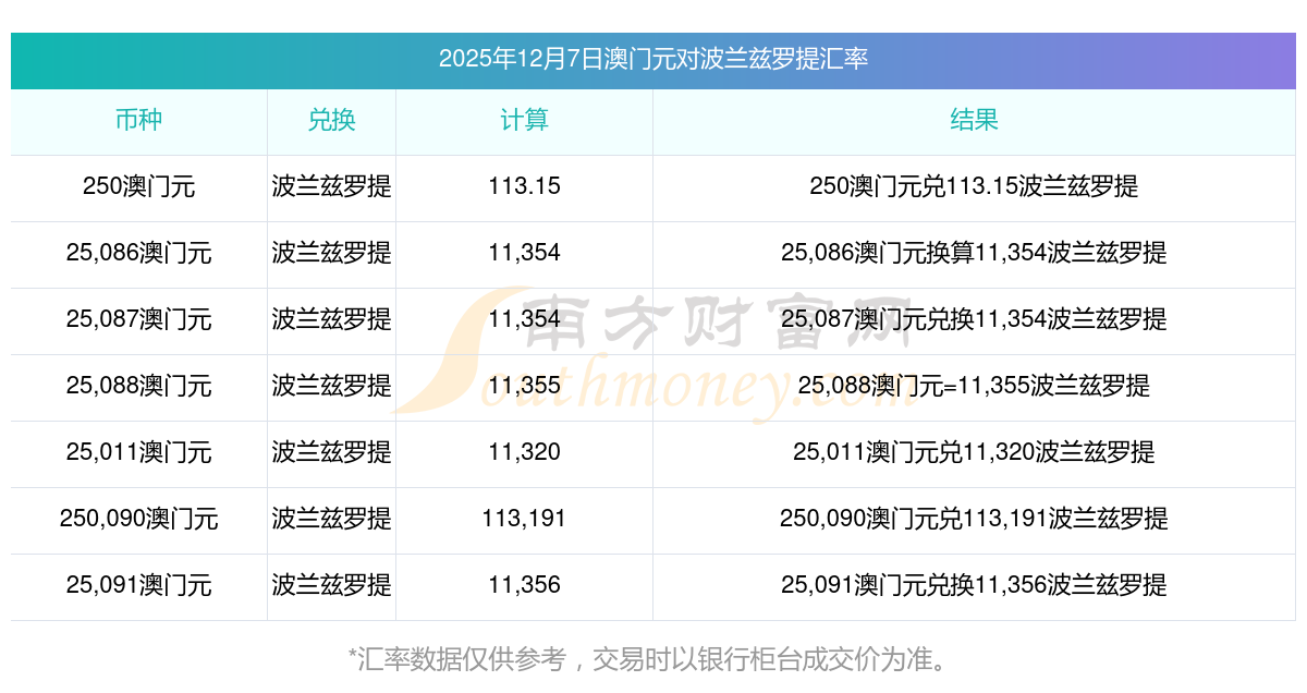 五十澳門(mén)元兌換是多少波蘭茲羅提2025年12月7日