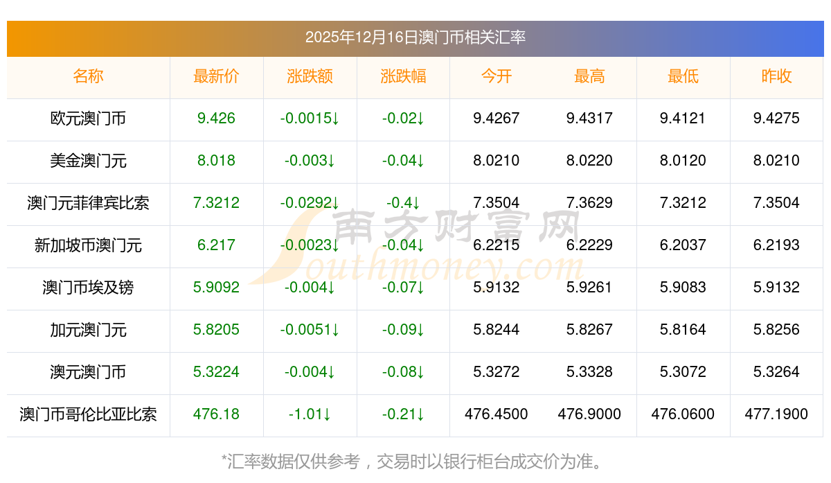 2025年12月16日澳門(mén)幣相關(guān)匯率查詢(xún)