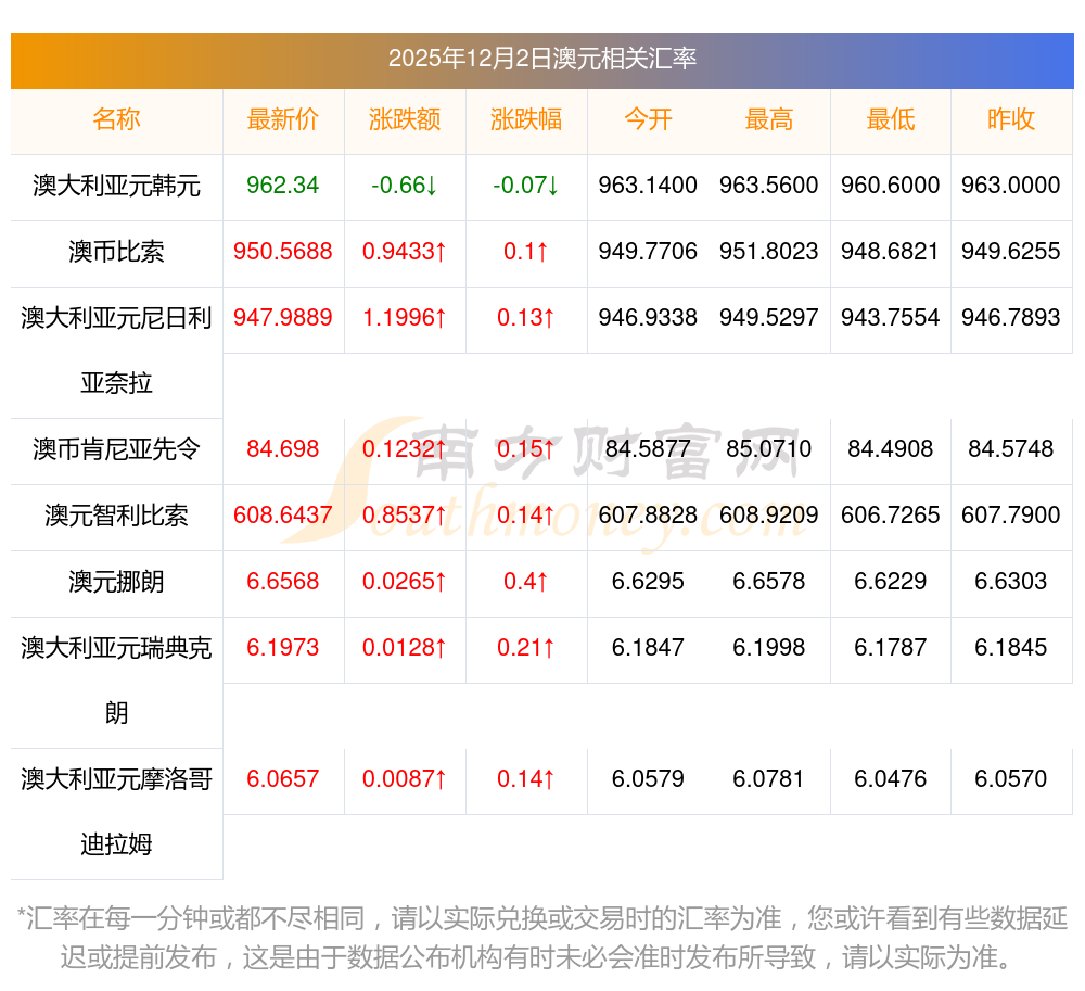 2025年12月2日澳元相關(guān)匯率查詢(xún)