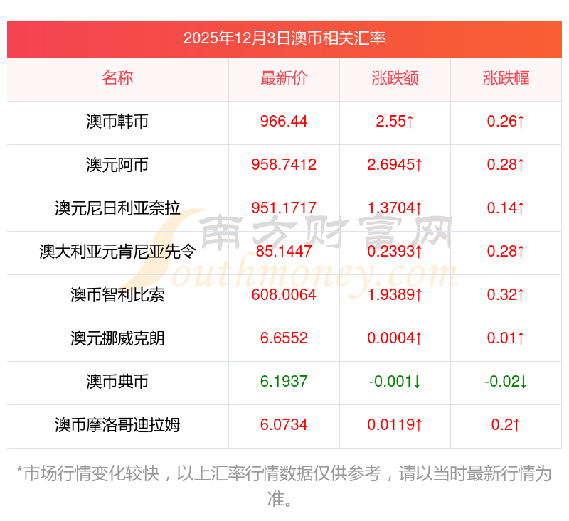 2025年12月3日最新消息,澳幣兌換智利比索最新匯率為608.006400,今開為606.0675,昨收為606.0675,最高為608.0065,最低為605.0055。