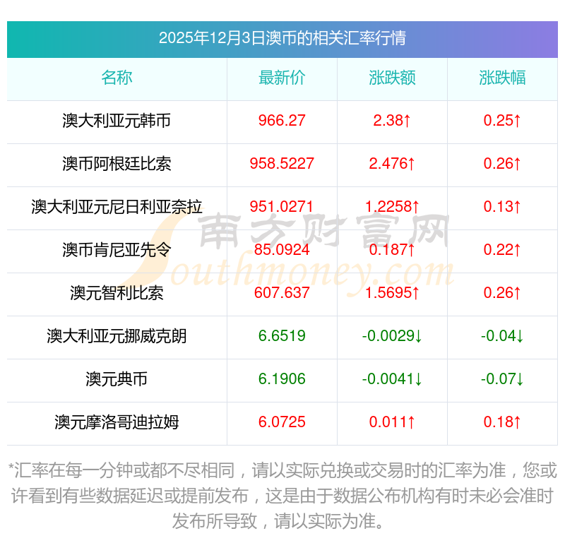 根據(jù)2025年12月3日匯率計(jì)算,AUD兌換NZD匯率最新價1.144900:今日開價1.1446,昨日收價1.1443,最高價1.1463,最低價1.1422。