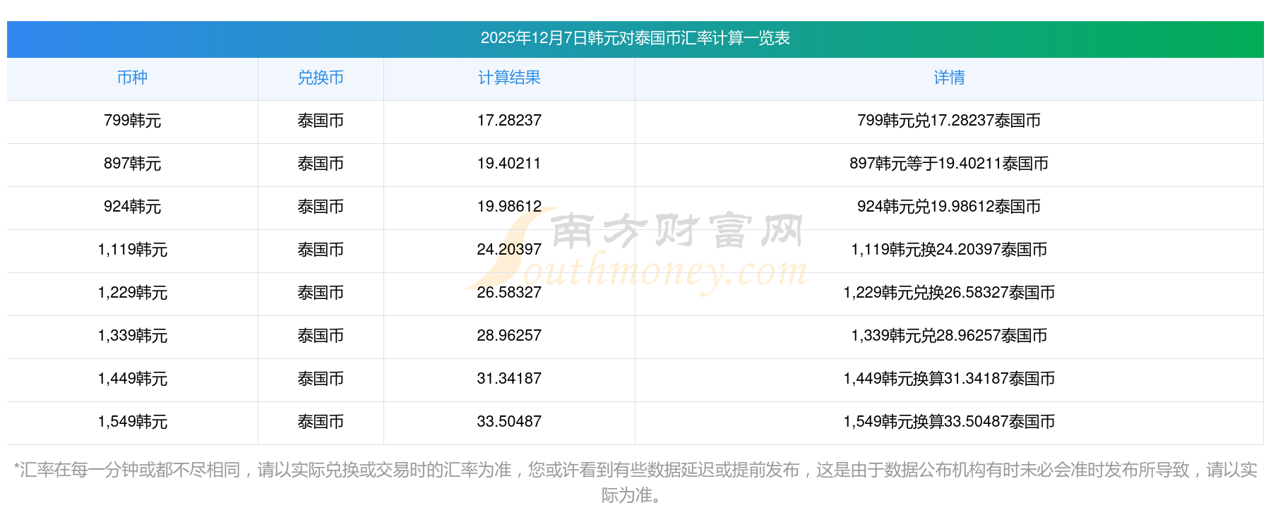 今日10韓元兌泰國幣匯率_實(shí)時(shí)匯率查詢2025年12月7日