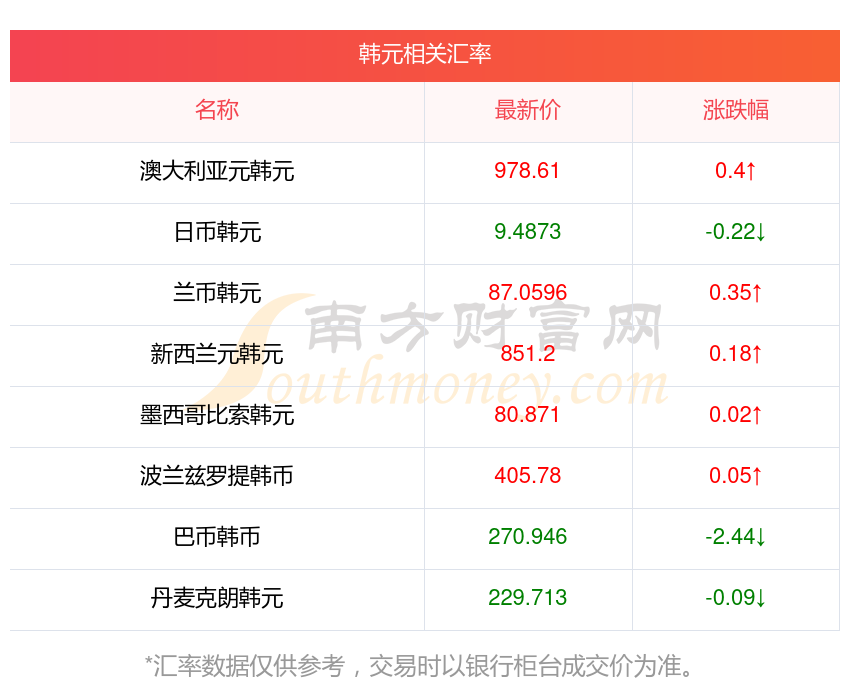 南方財(cái)富網(wǎng)為您提供韓元對泰國幣匯率最新價(jià)格詳情。