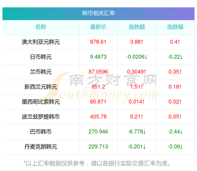 南方財富網(wǎng)為您提供韓幣對智利比索匯率最新價格詳情。