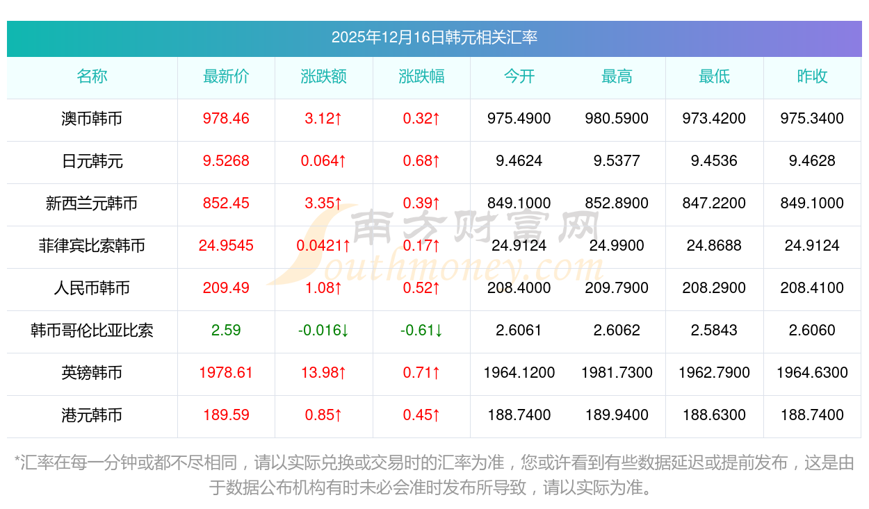 2025年12月16日韓元相關(guān)匯率查詢