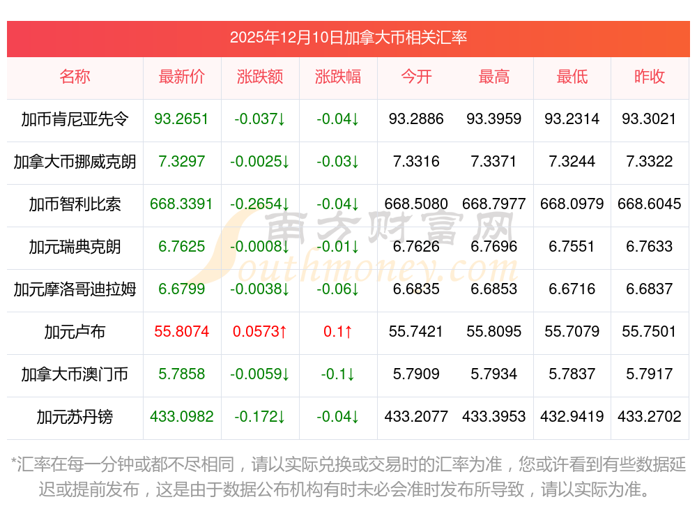2025年12月10日加拿大幣相關(guān)匯率查詢