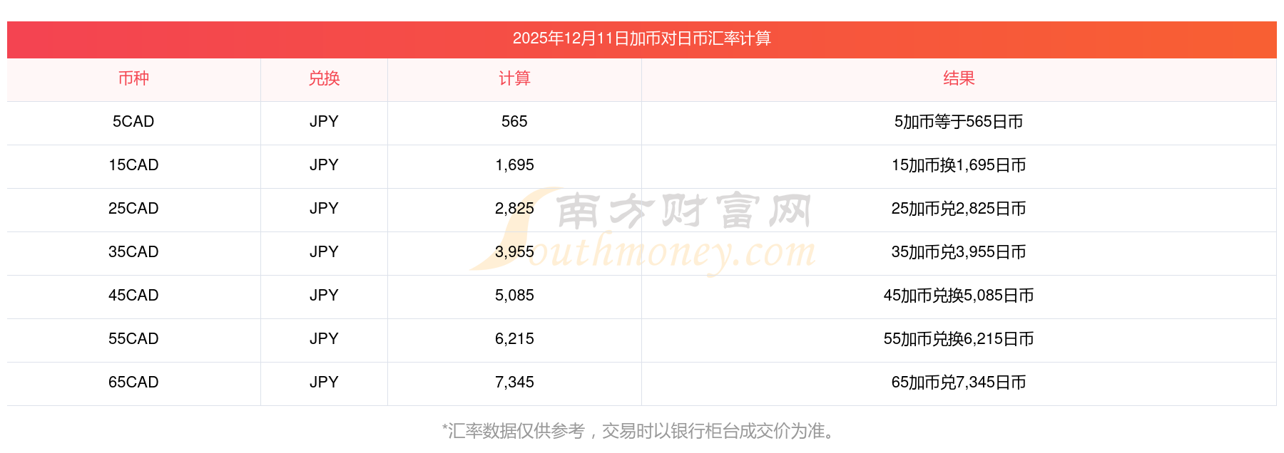 加幣與日幣兌換匯率_今天實(shí)時(shí)匯率查詢(xún) 2025-12-11
