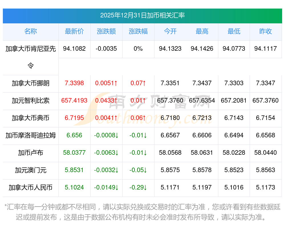 2025年12月31日加幣相關(guān)匯率查詢