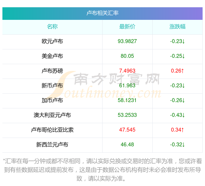 南方財(cái)富網(wǎng)為您提供盧布對(duì)人民幣匯率最新價(jià)格詳情。