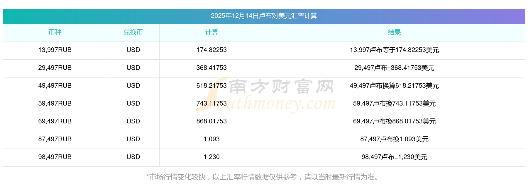 南方財(cái)富網(wǎng)為您提供盧布對美元匯率最新價(jià)格詳情。