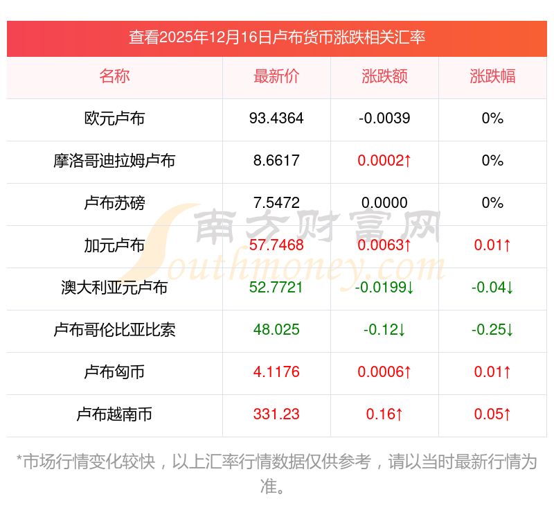 2025年12月16日盧布相關(guān)匯率查詢