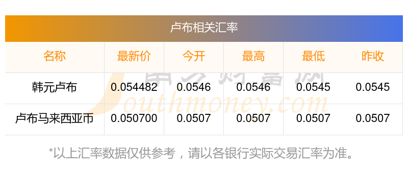 南方財富網(wǎng)為您提供盧布對馬來西亞幣匯率最新價格詳情。