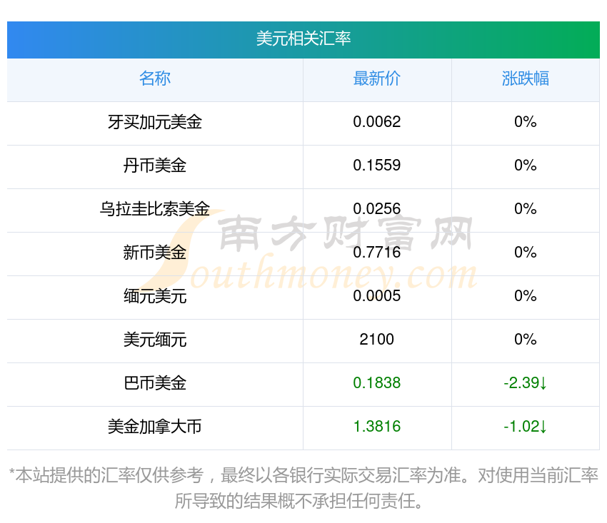 南方財(cái)富網(wǎng)為您提供美元對(duì)阿幣匯率最新價(jià)格詳情。