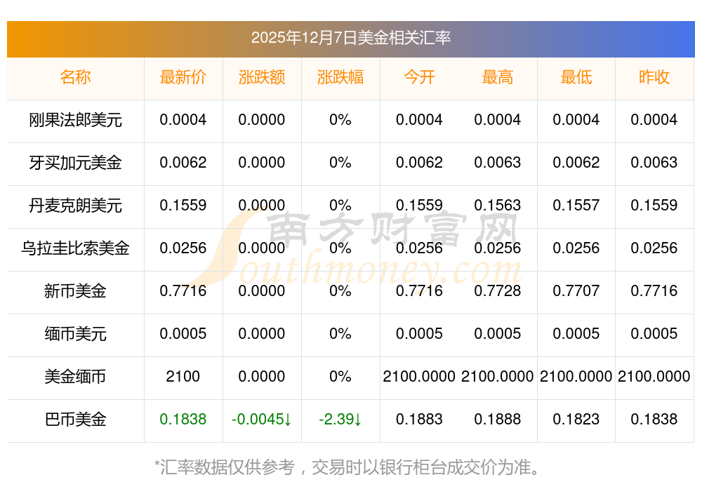 匯率數(shù)據(jù)僅供參考,交易時(shí)以銀行柜臺(tái)成交價(jià)為準(zhǔn)。