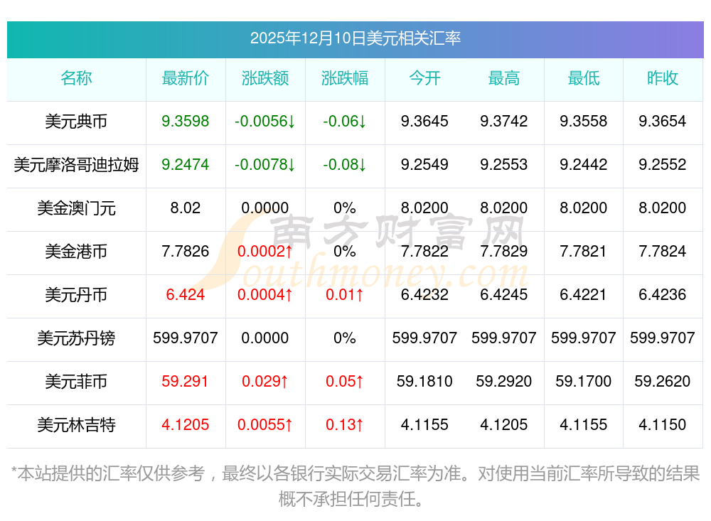 2025年12月10日美元相關(guān)匯率查詢(xún)