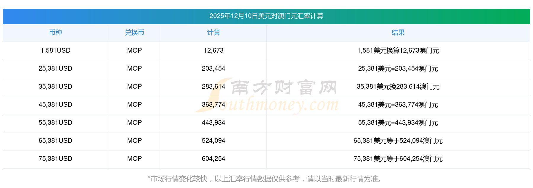 今天美元對(duì)澳門(mén)元匯率_12美元對(duì)澳門(mén)元匯率查詢(12-10)