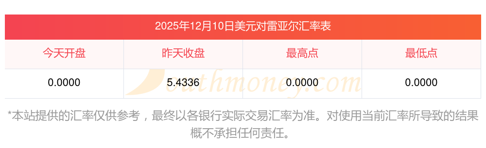 南方財富網(wǎng)為您提供美元對雷亞爾匯率最新價格詳情。