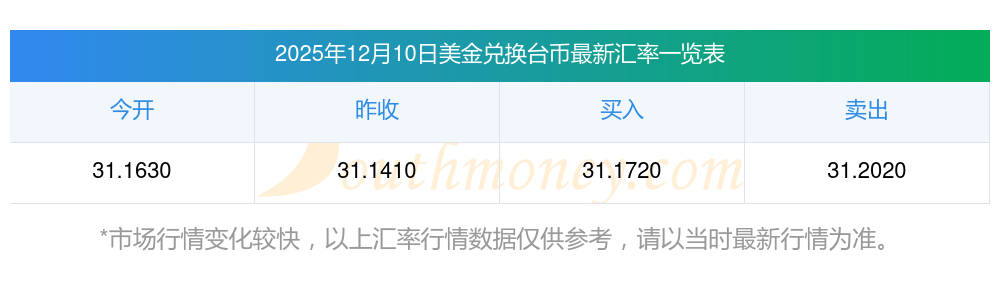 2025年12月10日美金與臺幣的兌換匯率計(jì)算如下: