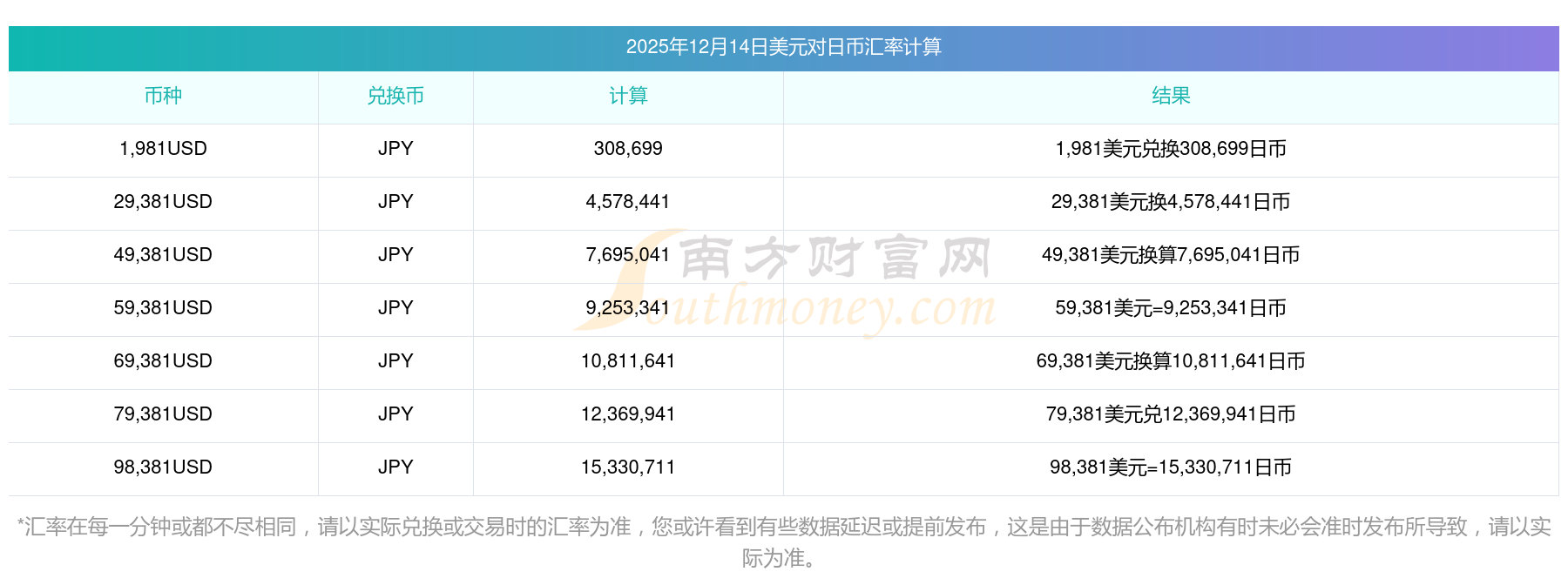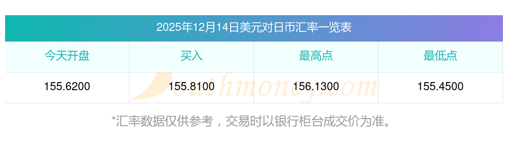 日幣今日匯率實(shí)時(shí)查詢(xún) 109美元對(duì)日幣匯率2025年12月14日