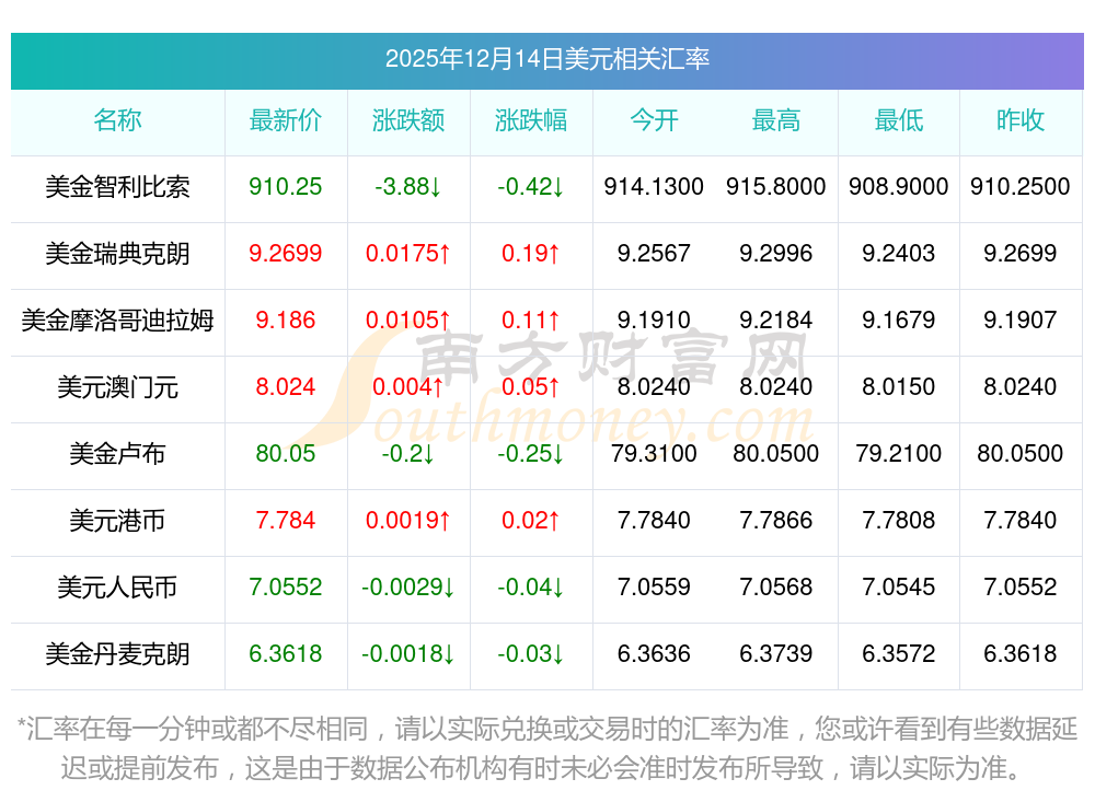 2025年12月14日美元相關(guān)匯率查詢