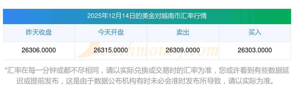 今天匯率行情:1美元兌越南幣匯率多少(2025年12月14日)