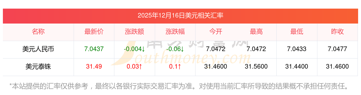 根據(jù)2025年12月16日匯率計算,USD兌換THB匯率最新價31.490000: