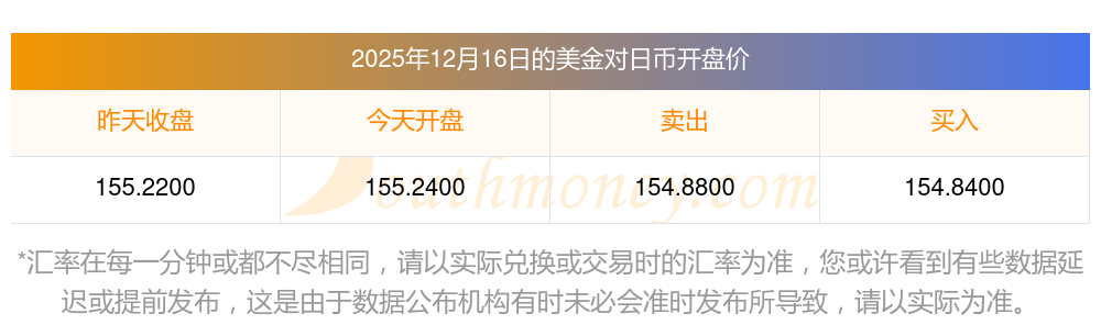 今天匯率行情:1美元兌日幣匯率多少(2025年12月16日)