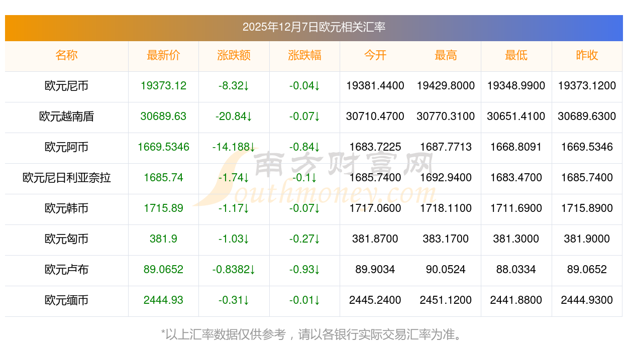 南方財富網(wǎng)為您提供歐元對人民幣匯率最新價格詳情。