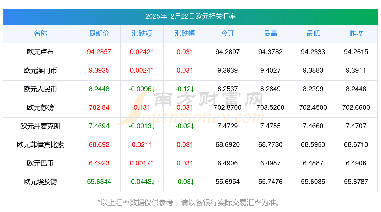 根據(jù)2025年12月22日匯率,歐元兌換波蘭茲羅提匯率最新價(jià)4.204800,今開價(jià)4.2068,昨收價(jià)4.2065,最高價(jià)4.2087,最低價(jià)4.2038。