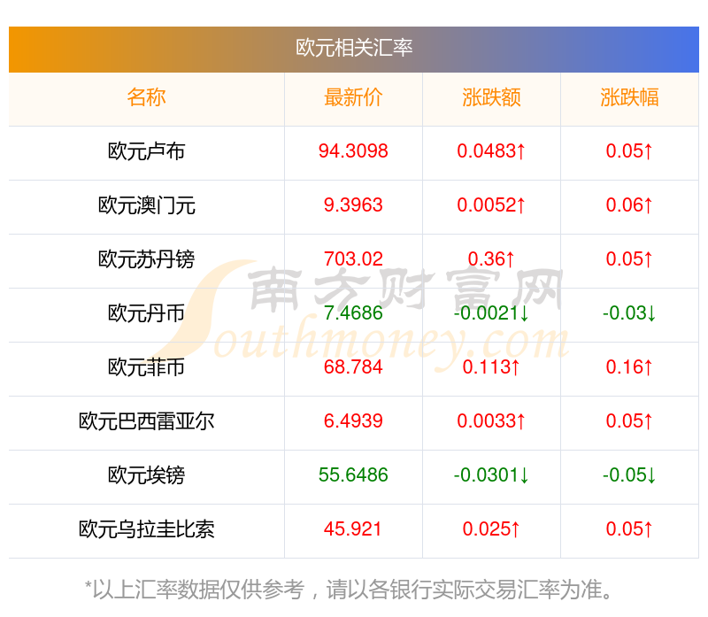 匯率在每一分鐘或都不盡相同,請以實際兌換或交易時的匯率為準,您或許看到有些數(shù)據(jù)延遲或提前發(fā)布,這是由于數(shù)據(jù)公布機構有時未必會準時發(fā)布所導致,請以實際為準。