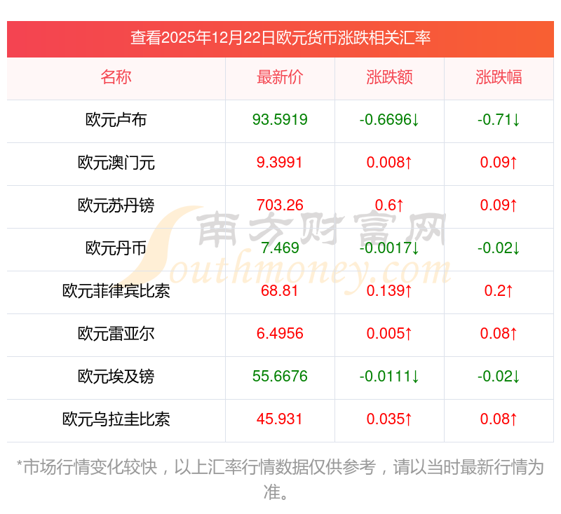 2025年12月22日歐元相關(guān)匯率查詢(xún)