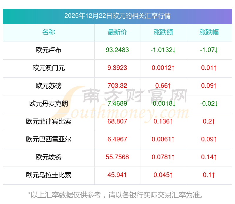 2025年12月22日歐元相關(guān)匯率查詢(xún)