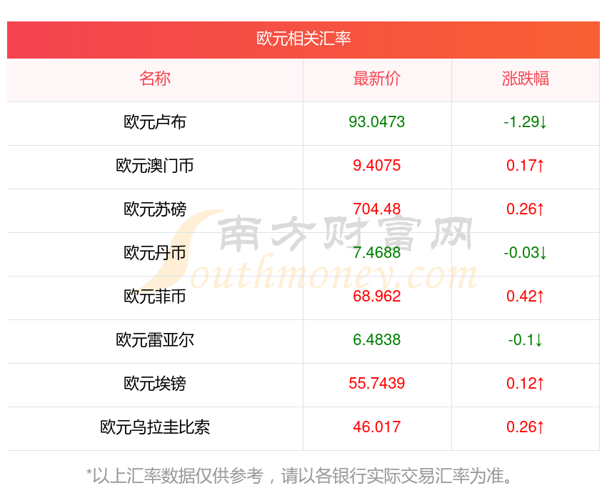 2025年12月22日歐元相關(guān)匯率查詢