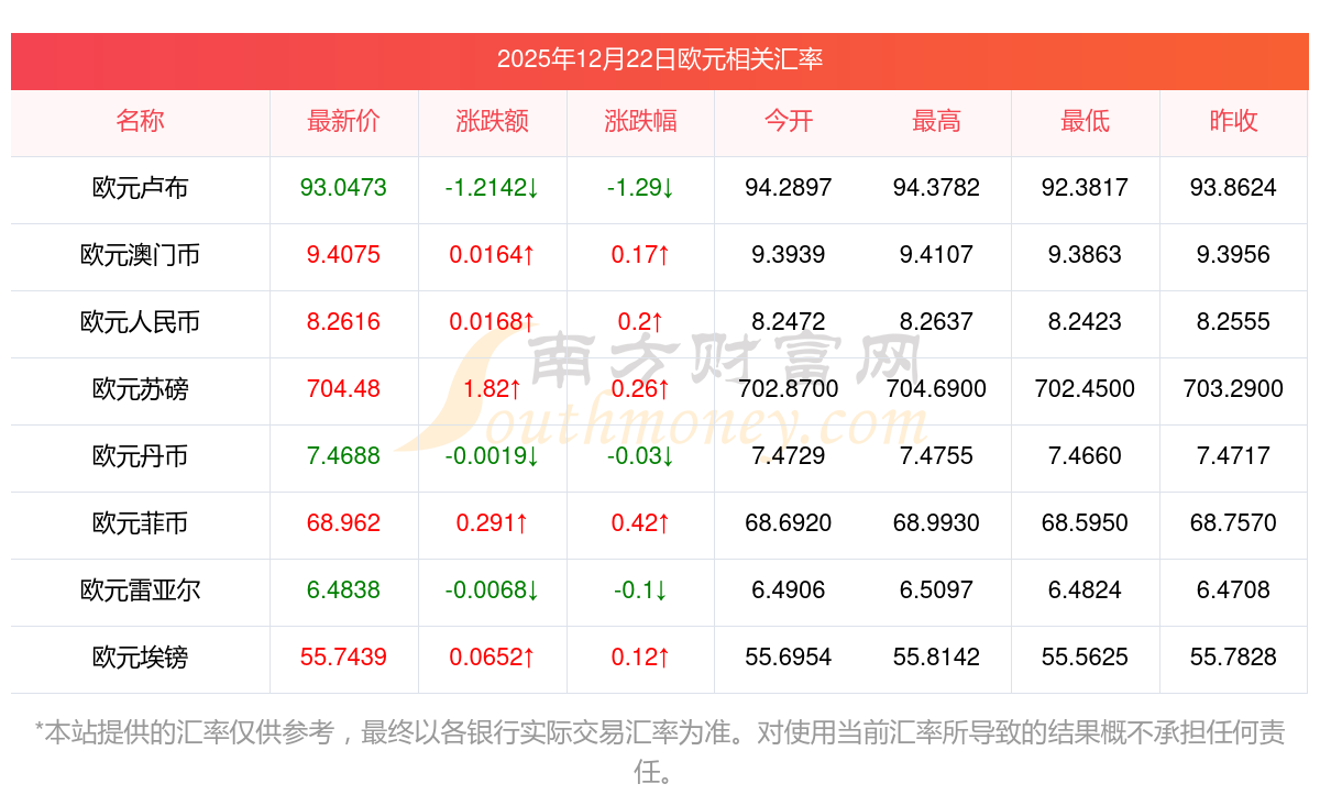 南方財(cái)富網(wǎng)為您提供歐元對(duì)人民幣匯率最新價(jià)格詳情。